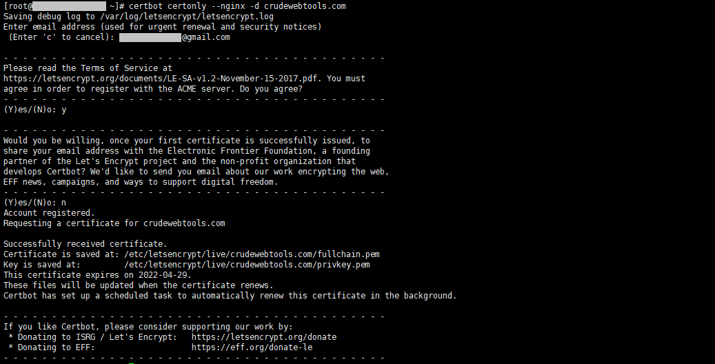 # certbot certonly --nginx -d crudewebtools.com
