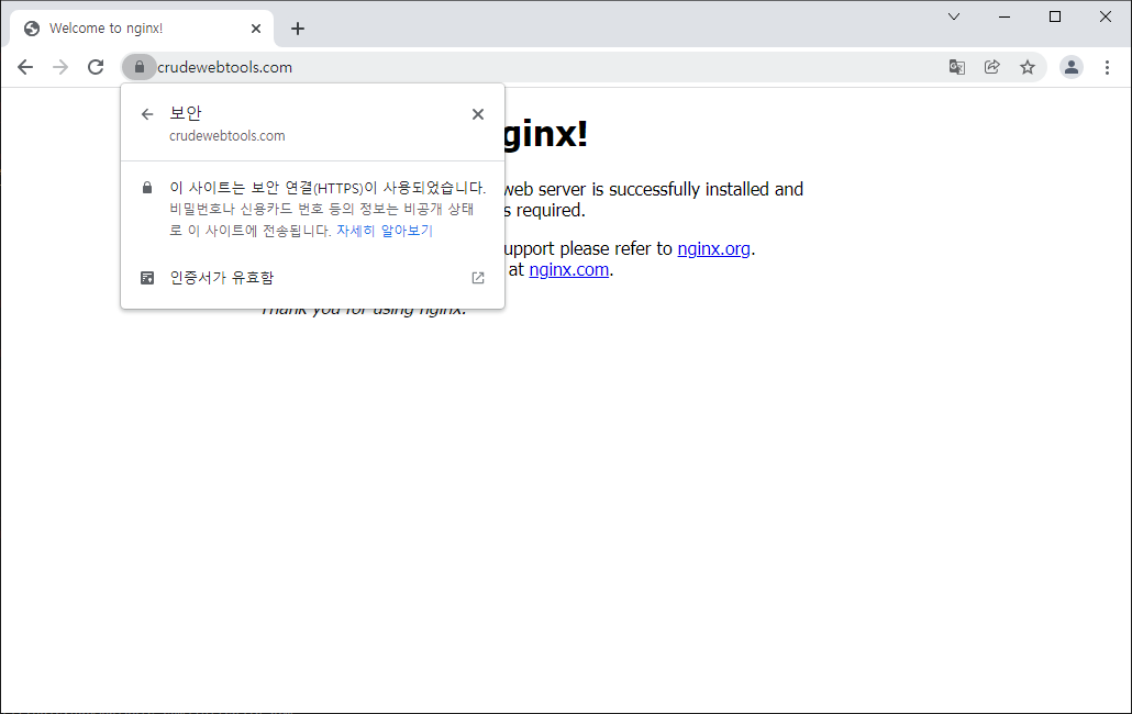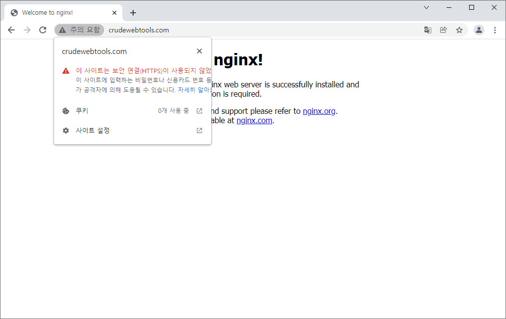 # nginx -s reload이제 https 로 접근해 보자. https://crudewebtools.com
